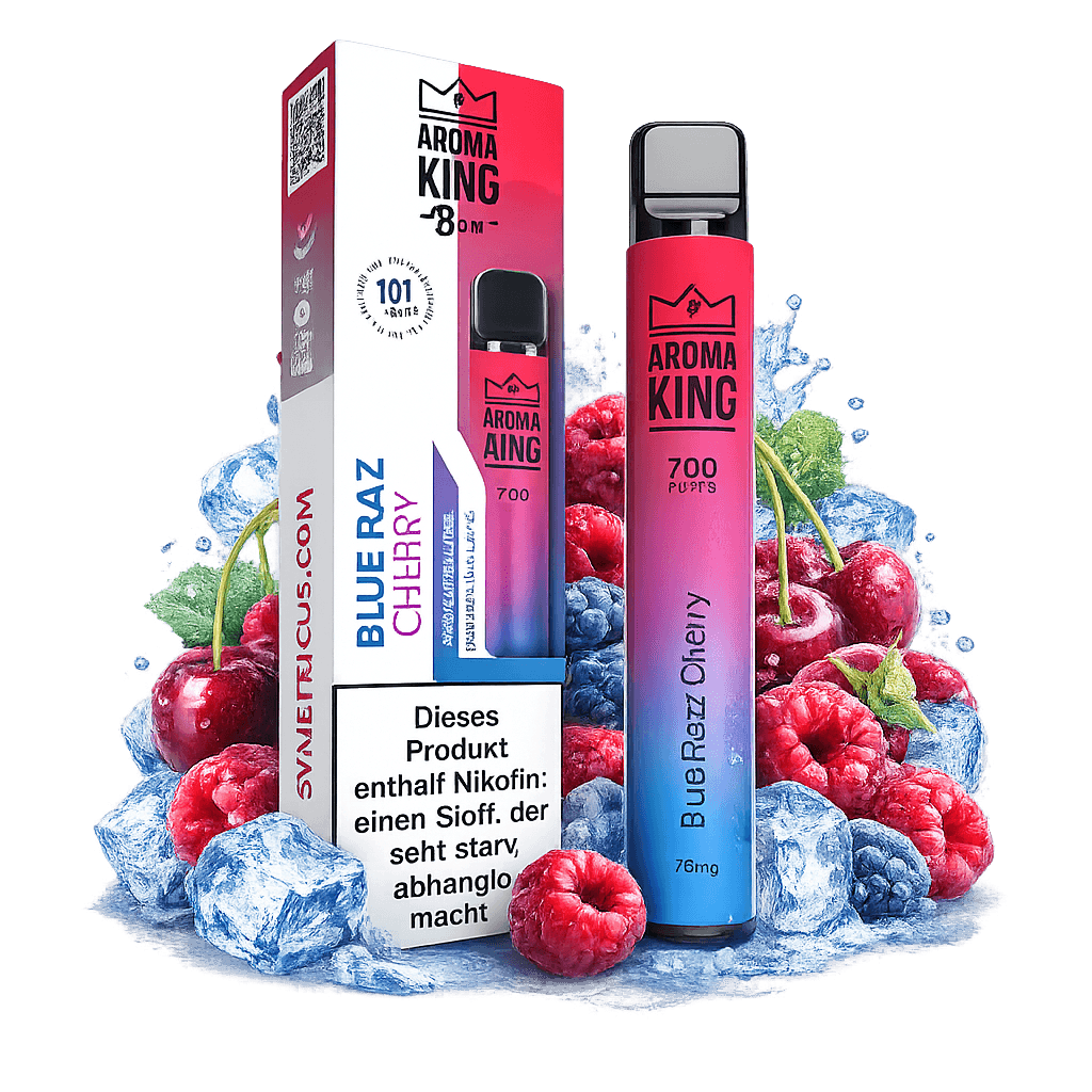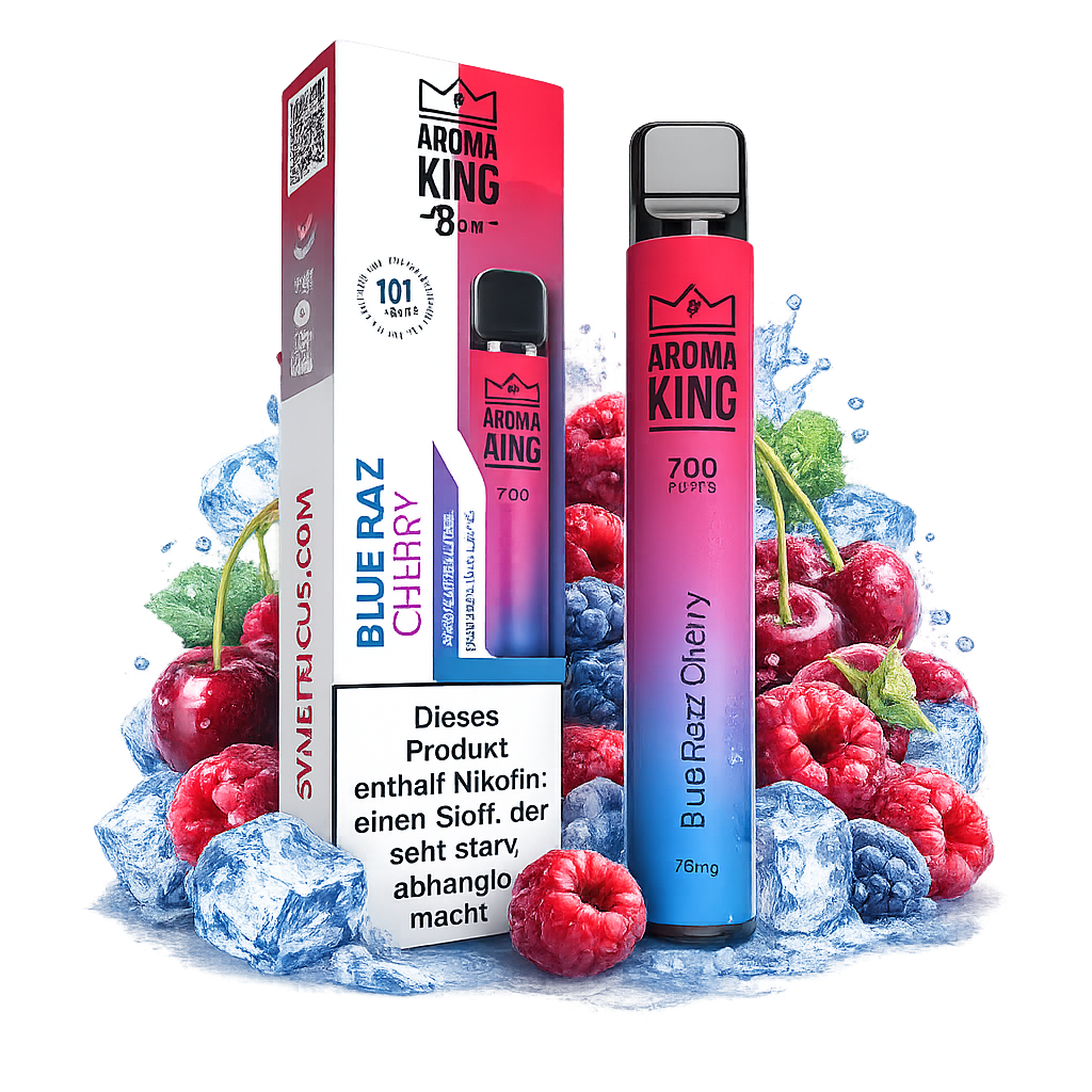 Aroma King 700 Blue Razz Cherry ist die ideale Wahl für Kunden, die ein intensives, fruchtiges Dampferlebnis suchen. Diese Einweg Vape überzeugt mit der Kombination aus süßer Blaubeer-Himbeere und kräftiger Kirschnote – perfekt für den Alltag und unterwegs.