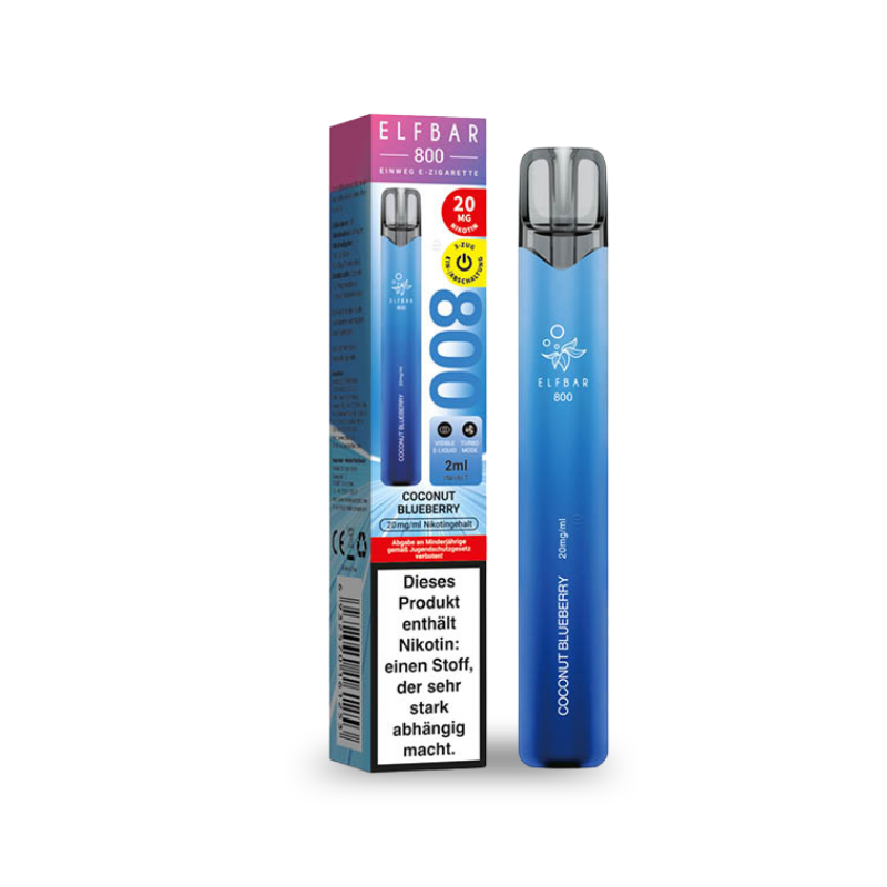 ELFBAR 800 Coconut Blueberry richtet sich an Kunden, die ein cremig-fruchtiges Dampferlebnis suchen. Die milde Süße von Kokosnuss trifft auf saftige Blaubeere und sorgt für ein ausgewogenes, exotisches Aroma mit hoher Wiederkaufquote.