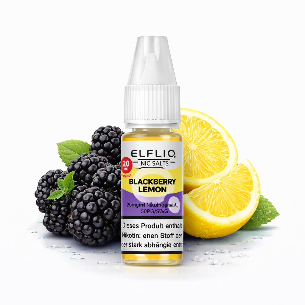 Erlebe mit ELFLIQ Blackberry Lemon die perfekte Kombination aus vollmundigem Brombeераroma und einer frischen, spritzigen Zitronennote. Das NicSalt Liquid bietet ein intensives Dampferlebnis und ist ideal für alle, die einen süß-fruchtigen Brombeergeschmack mit einem erfrischenden Zitronen-Kick bevorzugen.