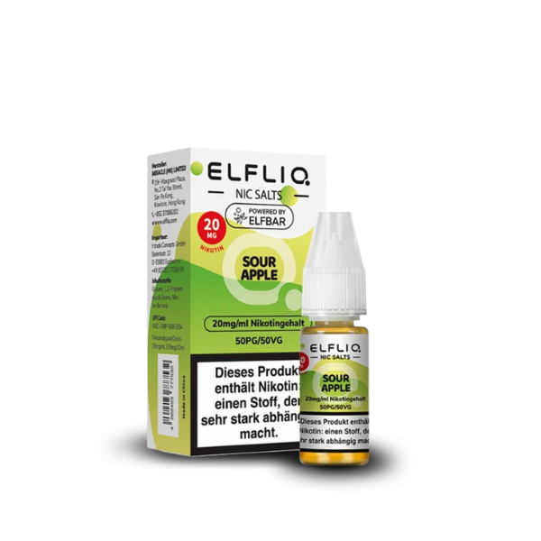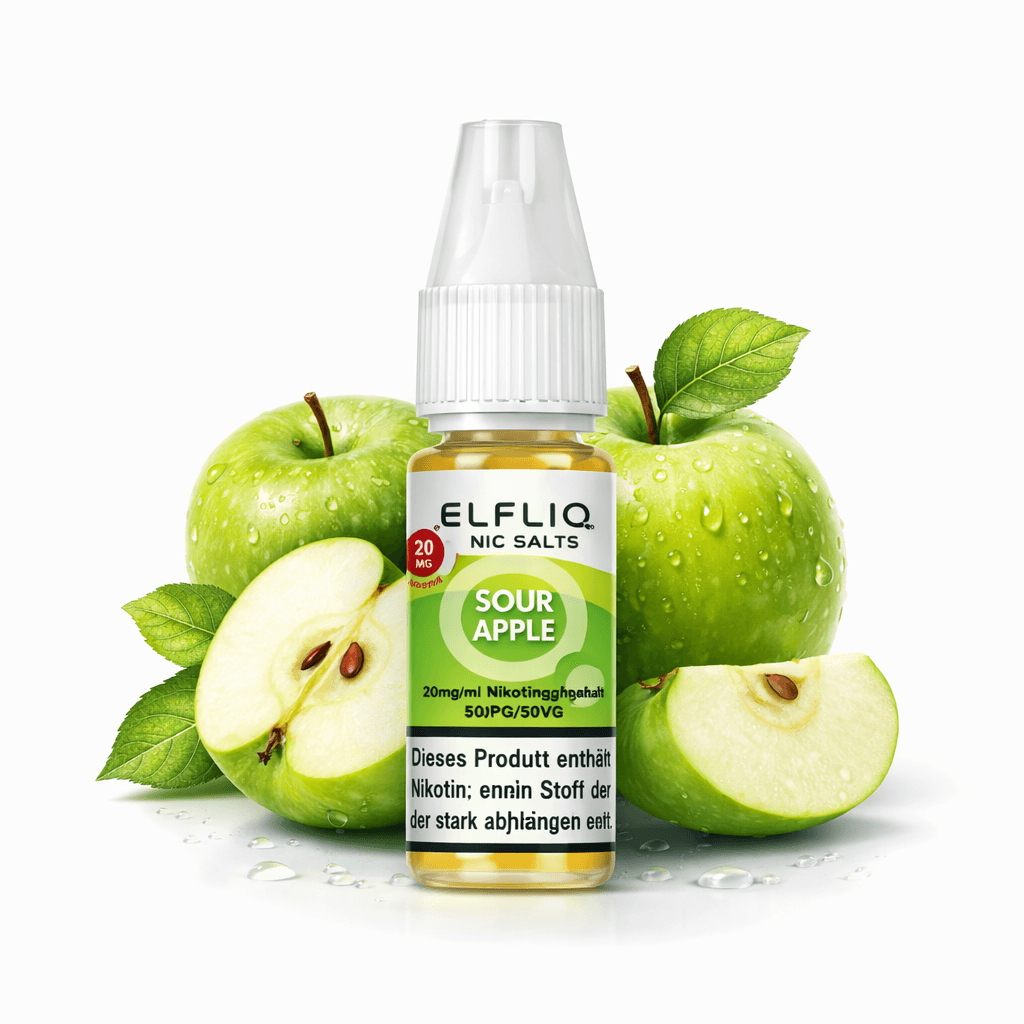 Erlebe mit ELFLIQ Sour Apple die perfekte Kombination aus vollmundigem Apfelaroma und einer prickelnden Säure. Das NicSalt Liquid bietet ein intensives Dampferlebnis und ist ideal für alle, die einen frisch-fruchtigen Apfelgeschmack mit einem angenehm sauren Kick bevorzugen.