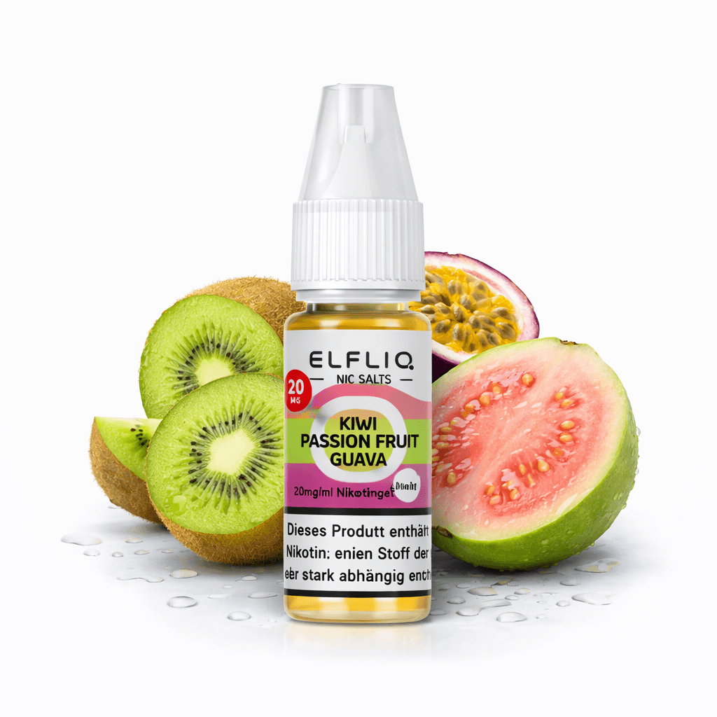 Erlebe mit ELFLIQ Kiwi Passion Fruit Guava die perfekte Kombination aus vollmundigem Tropenfruchtraroma und einem exotisch-süßen Abgang. Das NicSalt Liquid bietet ein intensives Dampferlebnis und ist ideal für alle, die einen saftigen, exotischen Fruchtmix aus Kiwi, Passionsfrucht und Guave bevorzugen.